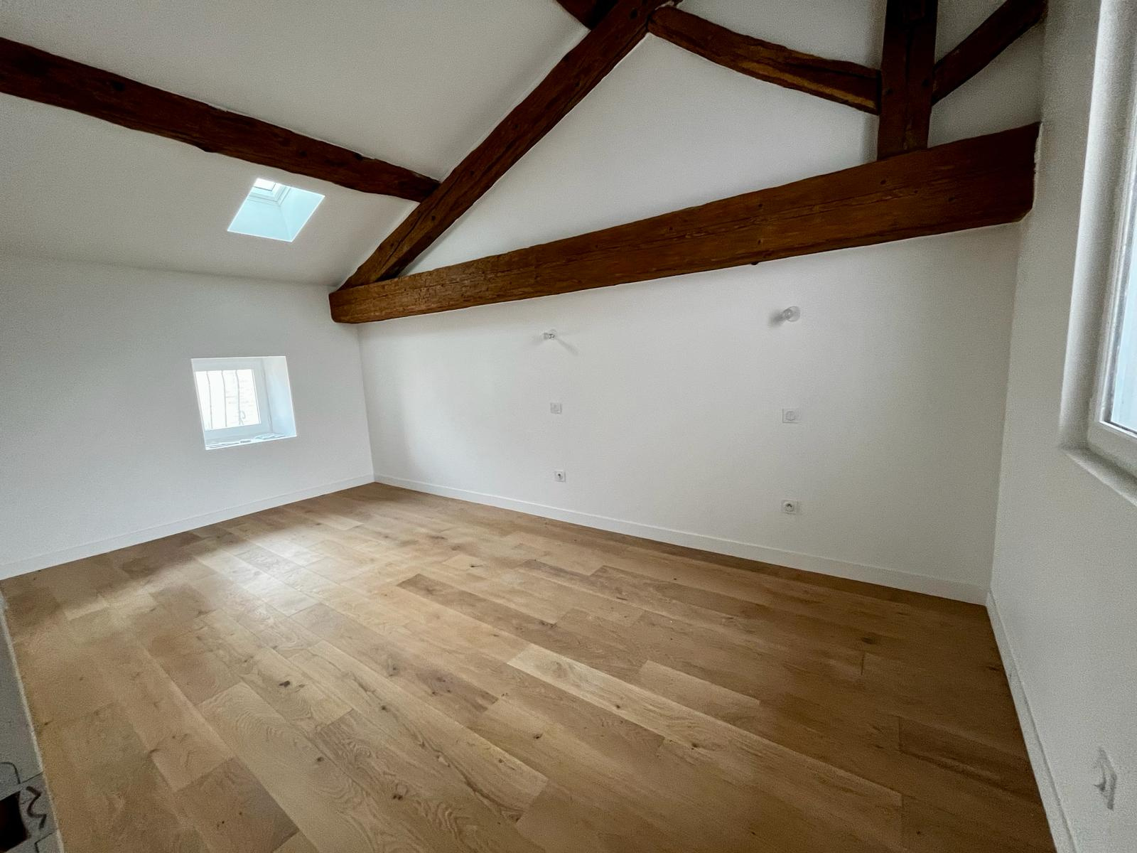 Hauteur sous plafond, poutres apparentes, parquet dans les chambres... L'atmosphère et l'authenticité de cet espace en font une résidence qui évoque l'histoire tout en offrant le confort contemporain.